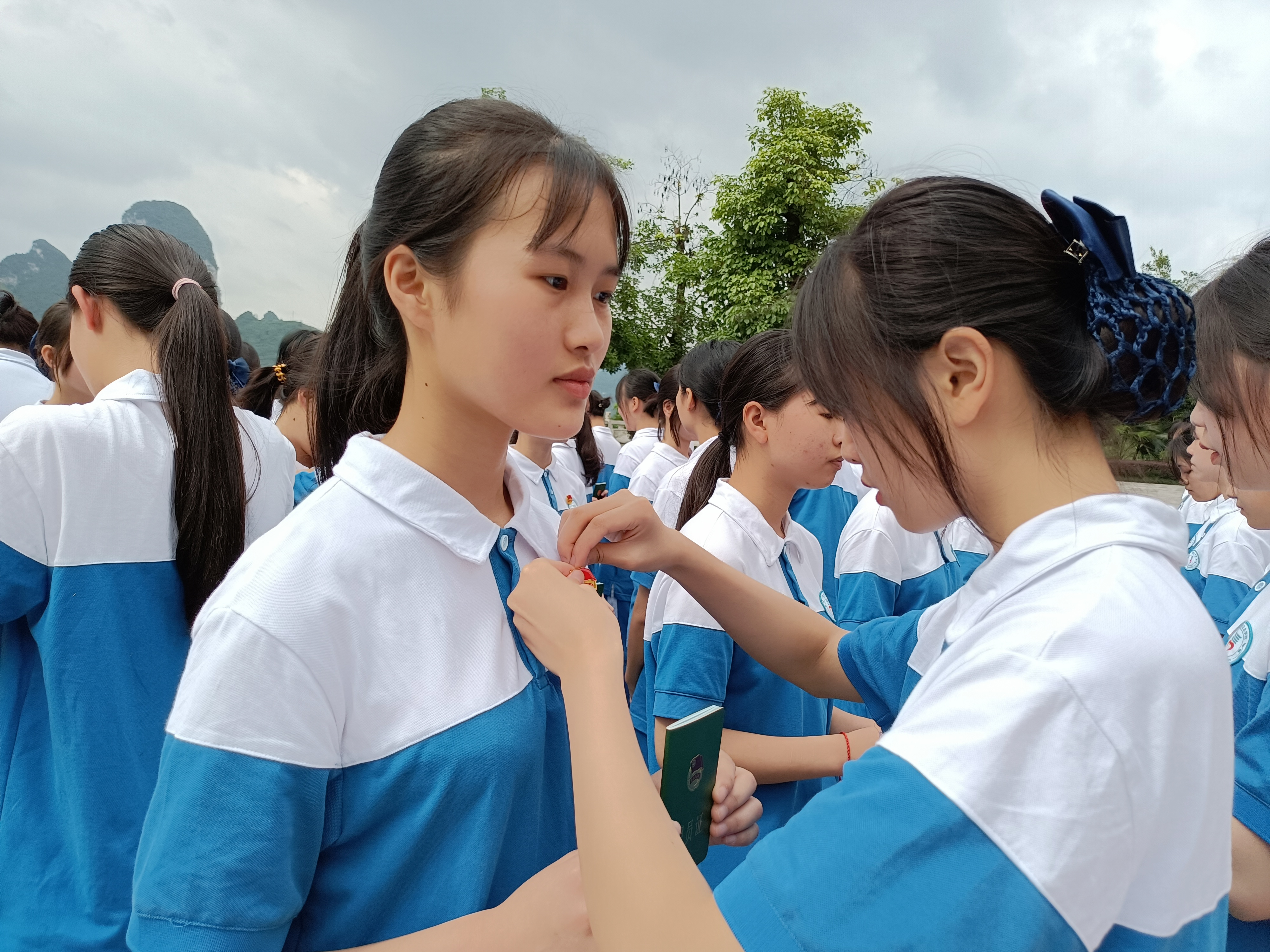活动在雄壮的国歌声中拉开帷幕,在河池市革命纪念馆的门前广场,我校隆重举办了新团员入团仪式,团委韦栋老师宣读名单,老团员为新团员颁发团员证和佩戴团徽,韦怡璇老师带领新团员们面对着鲜艳的团旗,庄严宣誓,接着新老团员代表发表感言,表示他们将用自己的一言一行,去奏响属于中国的青春乐章,最后校长陈朝亮寄语新老团员们:“让我们只争朝夕,不负韶华,努力学习并接受党史教育,不断提升自己的综合素质,共创辉煌的2021!”