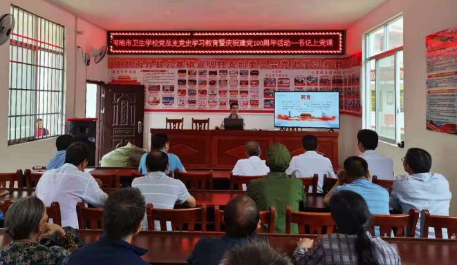7月1日,在中国共产党成立100周年华诞的喜庆时刻,河池市卫生学校党总支书记、校长陈朝亮同志一行三人,奔赴到南丹县六寨镇宣明村党支部开展共庆建党100周年活动。