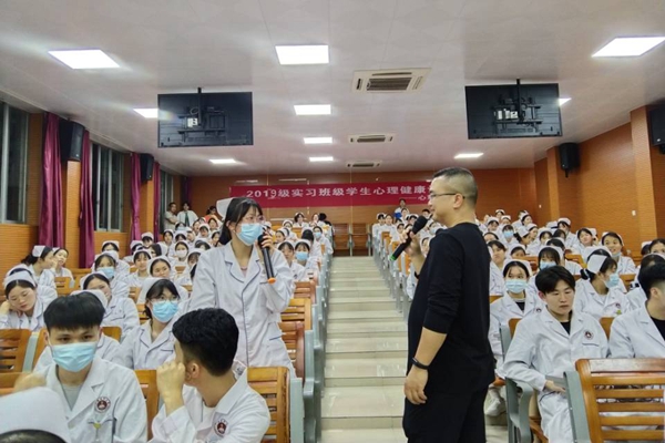 (通讯员 唐慧敏)48日晚,河池市卫生学校邀请到河池市第三人民医院医患办陆高庆主任,在第四阶梯教室对该校2019级实习生进行心理健康讲座。