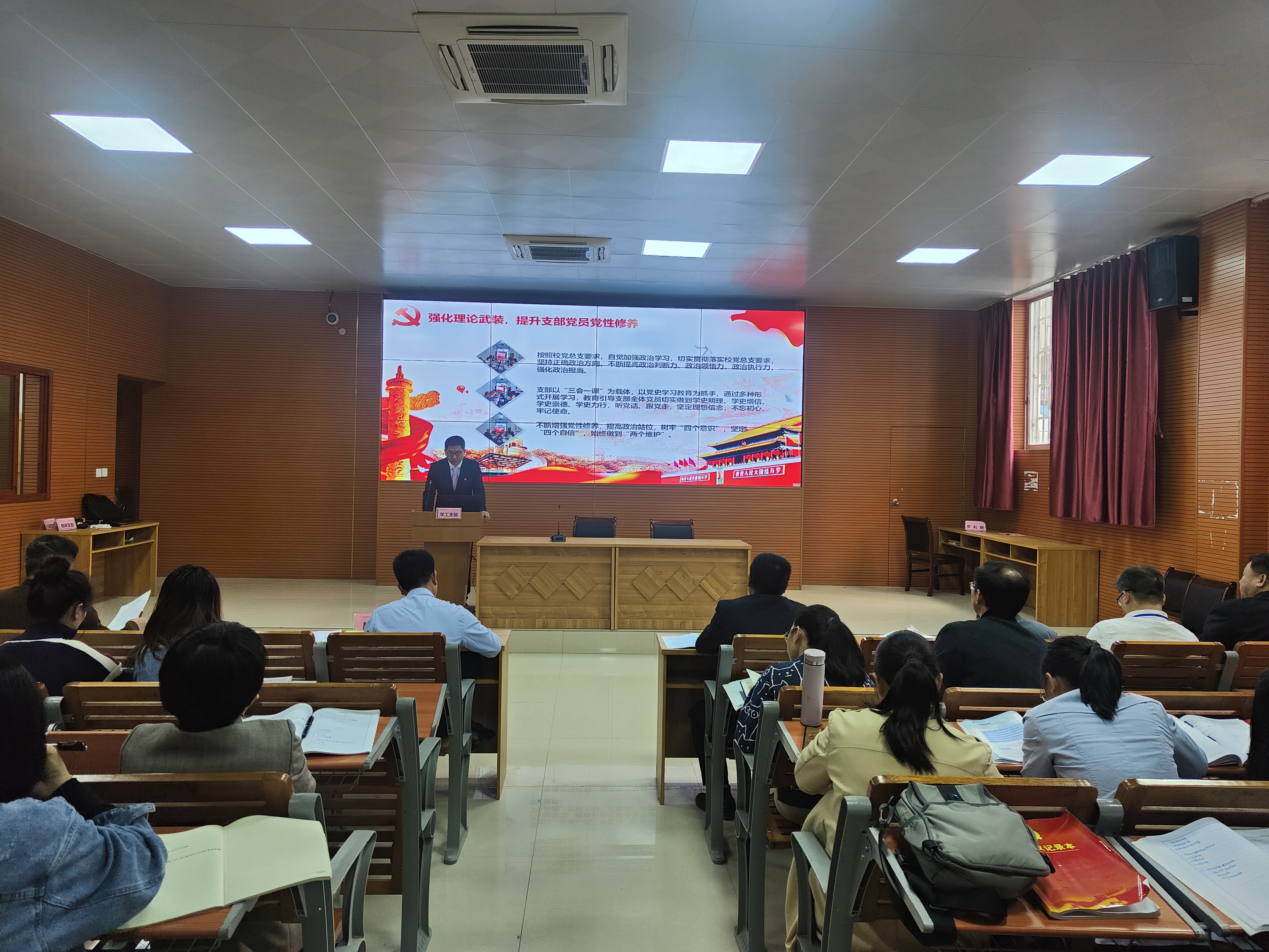 2022年4月20日下午,我校在第四多媒体教室召开2021年度支部书记抓基层党建和党风廉政建设工作述职评议大会,会议由学校党总支书记、校长陈朝亮主持,学校全体党员、预备党员、入党积极分子和入党申请人参加。
