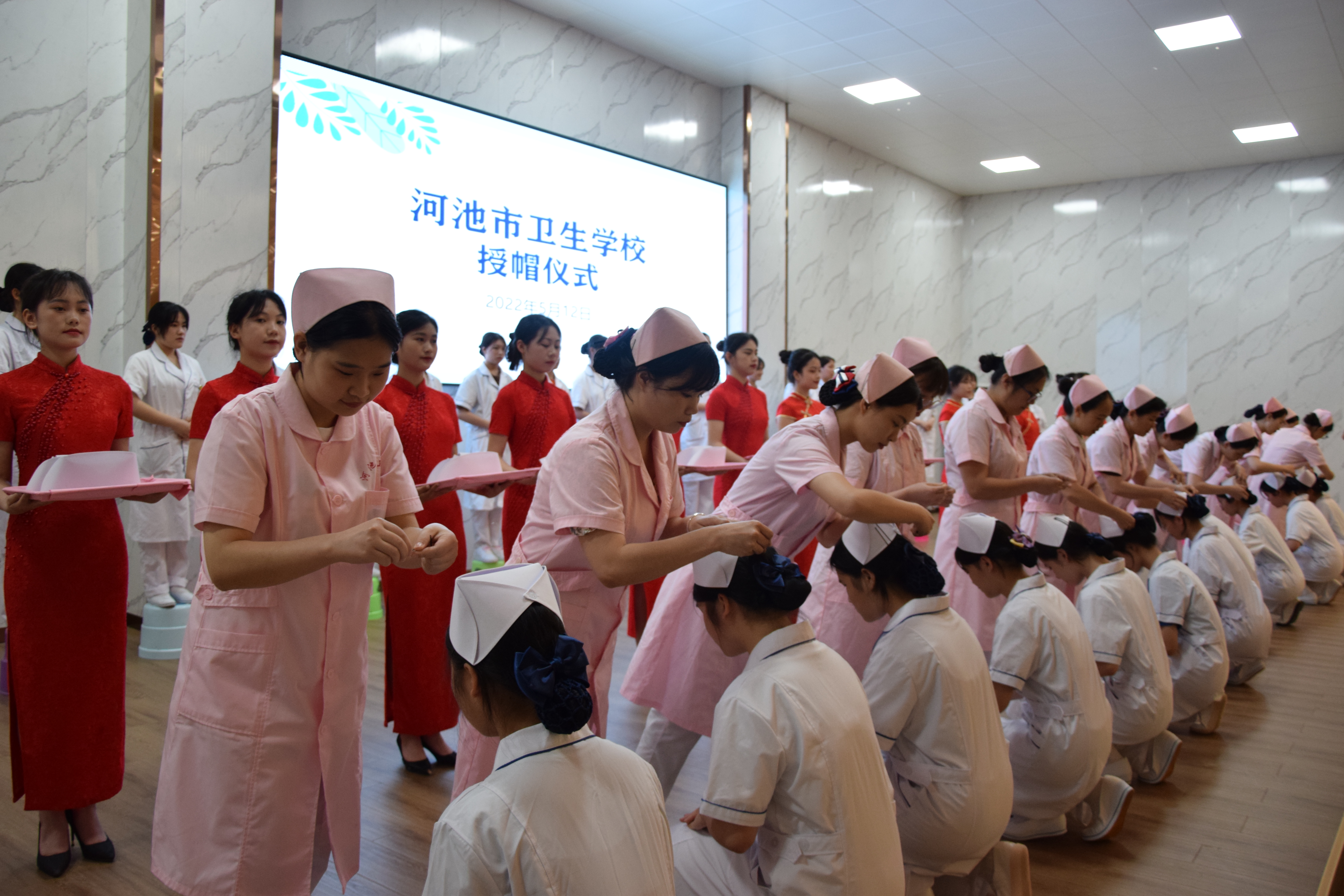 5月12日,为庆祝第111个国际护士节,传承和弘扬南丁格尔精神,我校举行护士节授帽仪式。学校领导、全体护理教师和护理学生代表出席本次活动。
