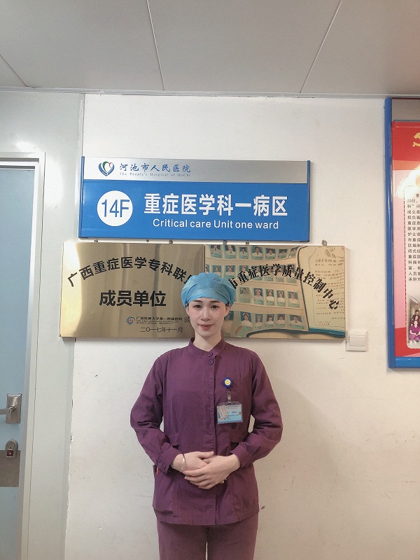2020届高职护理毕业生覃彩赫现工作于河池市人民医院重症医学科一病区
