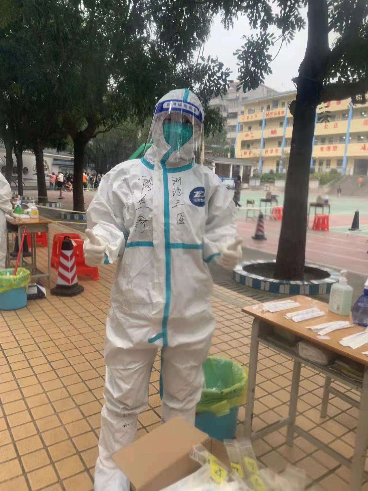 2021届高职护理毕业生廖兰琦在河池市第三人民医院普通外科工作,2022年2月两次主动请缨到百色市、防城港市抗疫