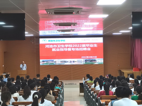 4月26日,河池市卫校在第四多媒体教室举行2022届高职护理专业毕业生就业指导暨专场招聘会。学校招就办主任黄鸿宇主持会议,高职办主任兰洪给毕业生们做就业动员及…
