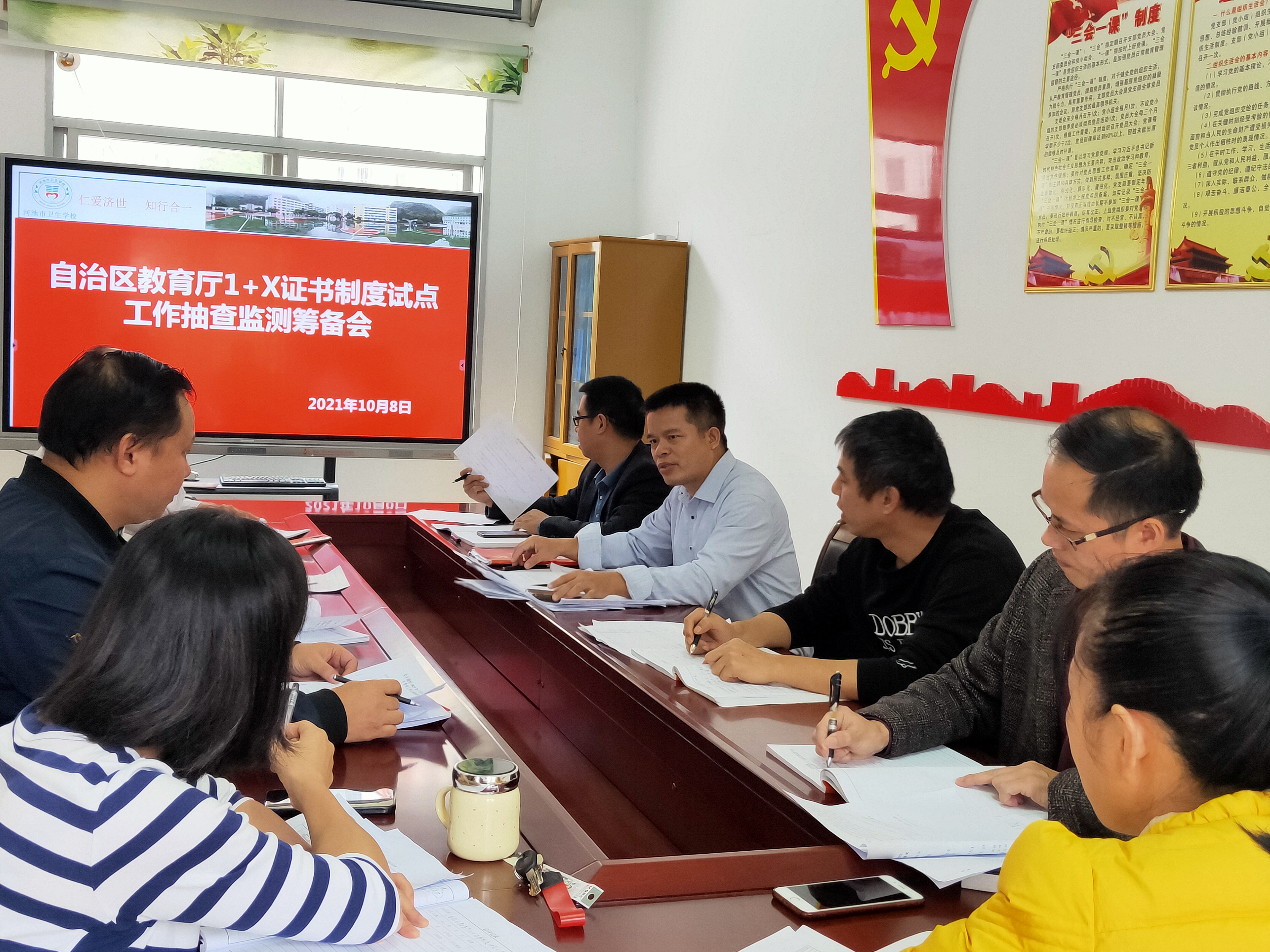 为贯彻落实国务院印发《国家职业教育改革实施方案》,深入推进1+X证书制度试点工作,迎接自治区教育厅1+X证书制度试点工作抽查监测,我校于10月8日召开了关于“…