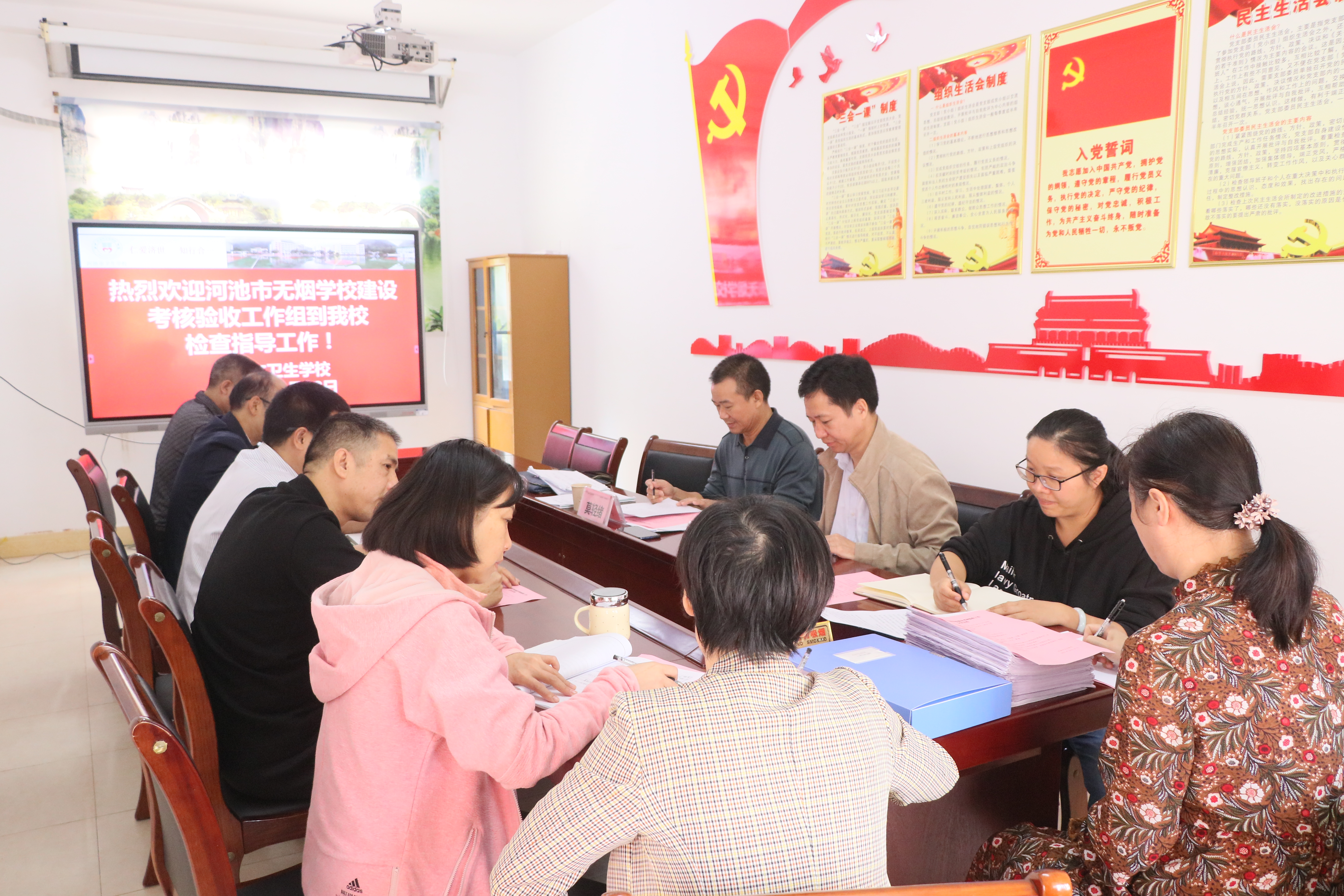 2021年10月28日,河池市市爱卫办主任莫轻绪一行莅临网校对无烟单位控烟工作进行检查。副校长刘钢、办公室主任韦恩豪陪同检查组实地考察学校无烟校园的建设情况。…
